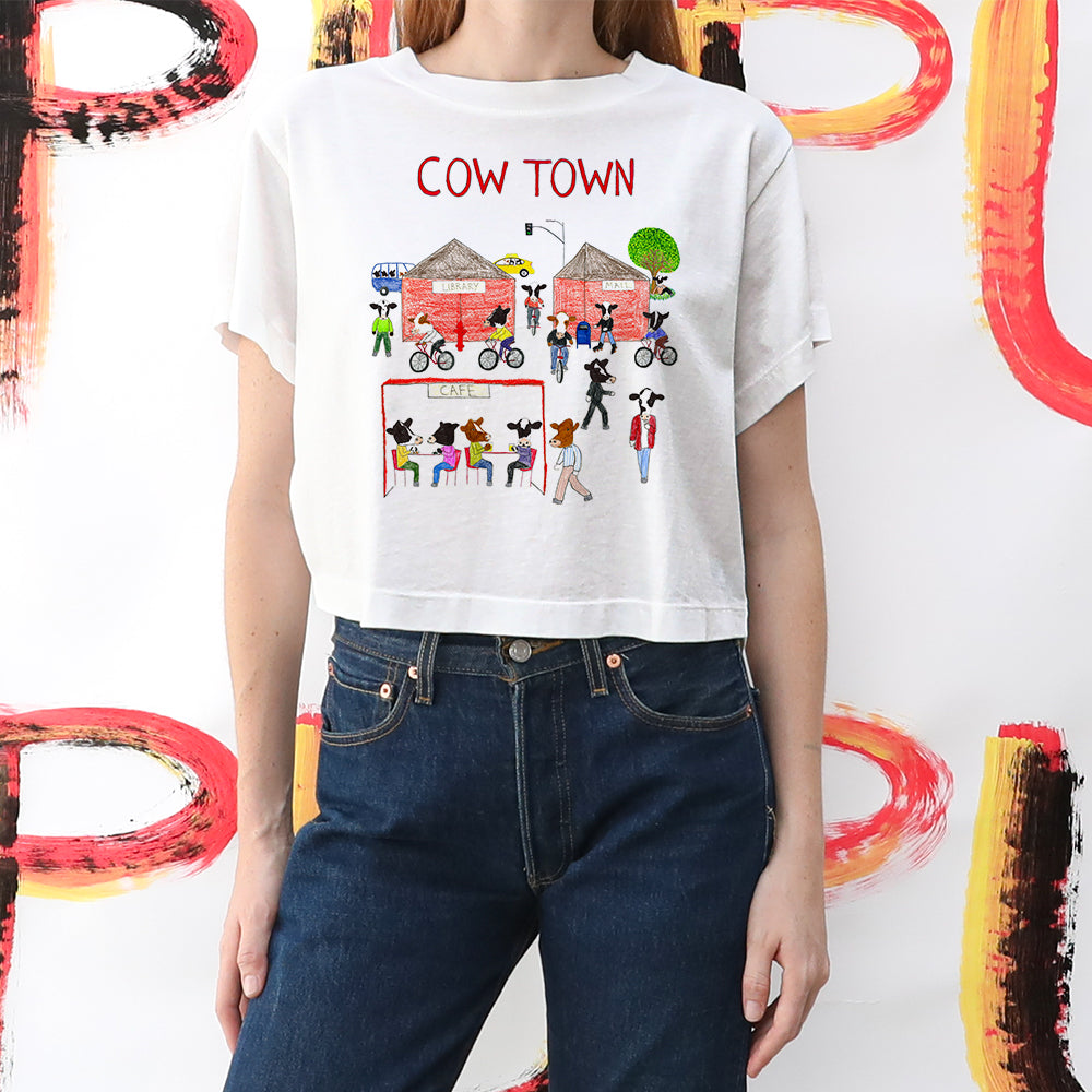 Cow Town Women's Crop Boyfriend Tee